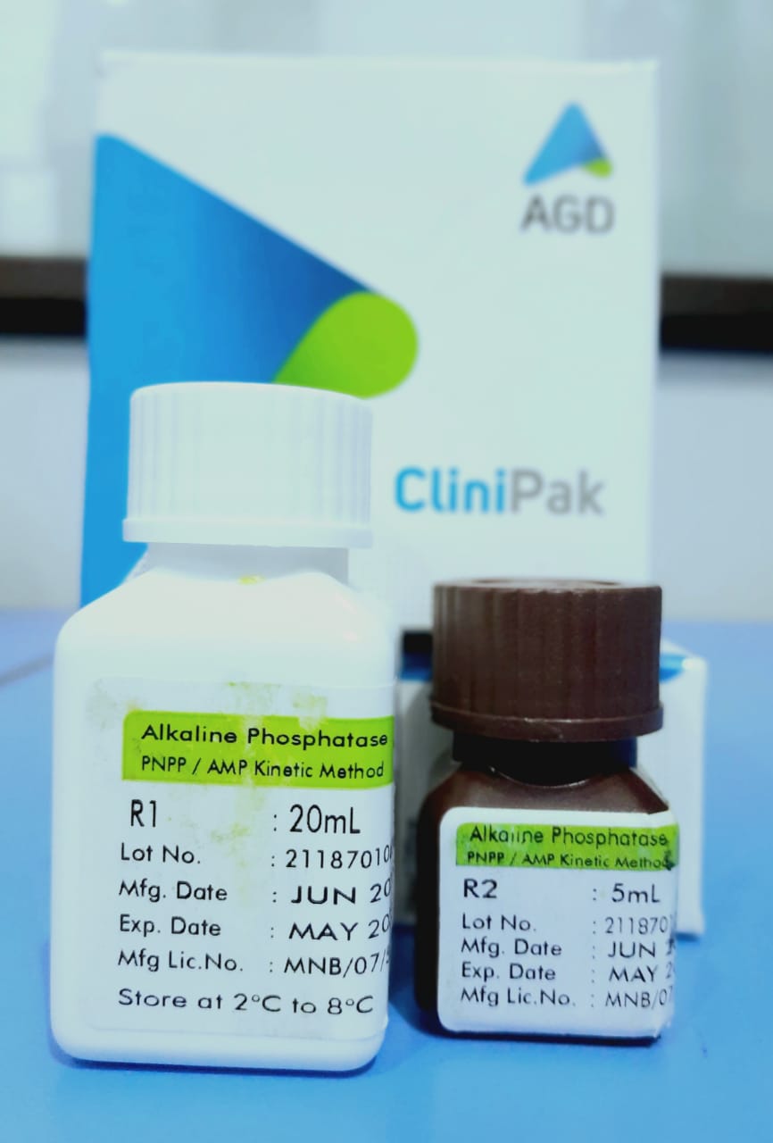 ALP hydrolyses p-Nitrophenyl phosphatase into p-Nitrophenol and phosphate. The alkaline pH of the buffered medium, p-Nitrophenol is yellow. The color developed due to hydrolysis measured at 405 nm and is proportional to the Alkaline Phosphatase activity.