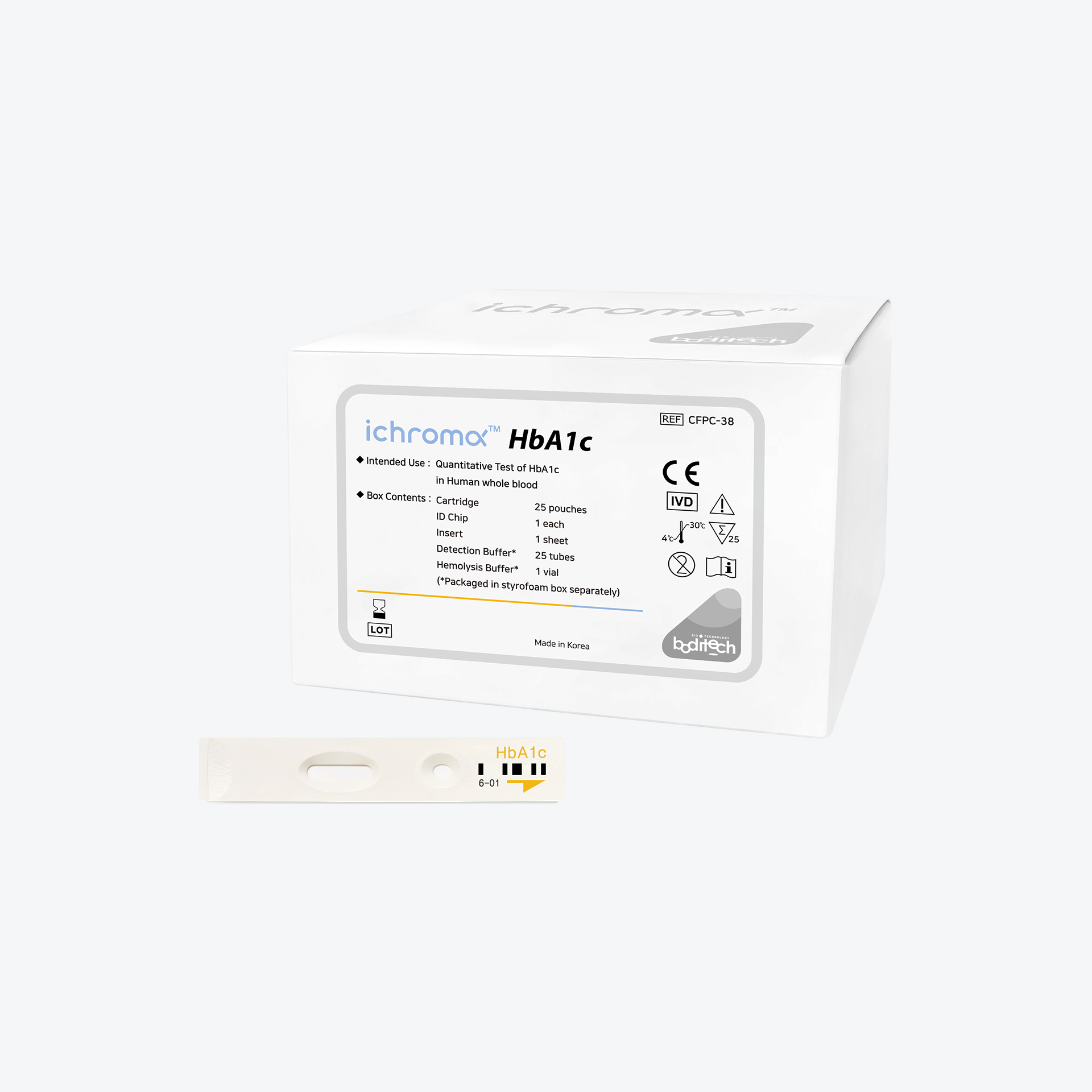 ichroma is a compact, easy-to-use diagnostic immuno-analyzer to measure the presence of various biomarkers for cardiac, cancer, hormones, infectious diseases, autoimmune diseases, and metabolic diseases. Diagnosis method Fluorescence-based Lateral Flow Immunoassay.